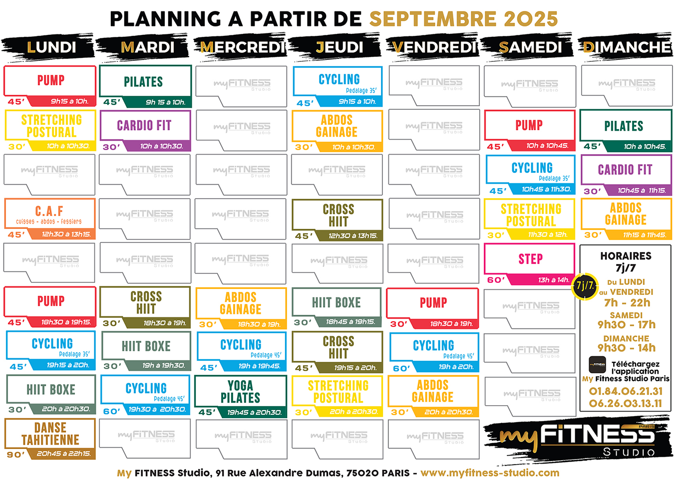PLANNING DES COURS